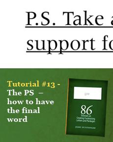And it’s both your first and final chance to motivate the donor to take action. Short lines and short paragraphs characterise a good PS. But don’t be afraid to use several paragraphs, as the occasion demands.