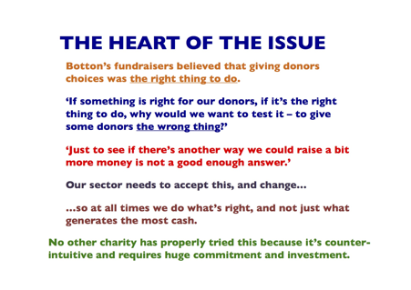 We need to think better about the options we provide donors with, such as opt-outs and other helpful choices that put the donor in control, as UK cancer charity for children CLIC Sargent have done.