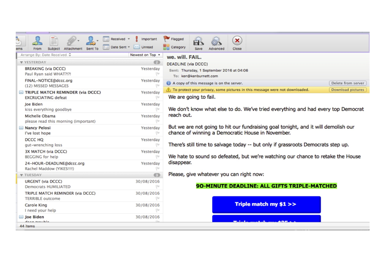 Sadly, this is a lesson too few organisations have kept in mind. Ken described getting bombarded by the United States Democratic Party leadership requesting donations to help them win back the House of Representatives, with nine in a single day in September alone. Nancy Pelosi, Joe Biden, Barack Obama, Barbra Streisand and Carole King: all got in touch (one presumes via a put-upon set of interns and volunteers) to ask for money in increasingly apocalyptic tones. As Ken says, ‘Surely when it comes to asking properly we fundraisers aren’t as bad as the Democratic Party?’ Events of the last year or so tell us otherwise.