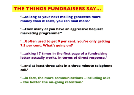 Fundraising in Britain should be donor-led and not target-led and you don’t always have to ask for money in every communication.