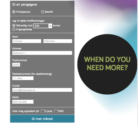 Beate’s advice is to make the donate button portable and put it on all relevant pages, which is what she did with the Norwegian Cancer Society.
