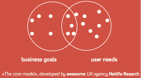 Users were not looking to make a donation but for information. As such, the core pages of their website were redesigned to centre on the points where user needs overlapped with the business goals, removing those that weren’t relevant. This follows the ‘core model’ explained below: