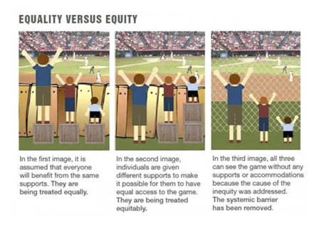Simone highlights the difference between equity and equality, using a handy visual metaphor: