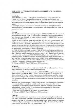 When you are trying to have a personal one-one-one conversation, don’t use the third person, ‘We are calling past supporters of Free Hydro and asking them to help with a generous contribution.’ Write something like ‘I am calling you because you have supported us to keep utility rates down. I’m calling for your help again now’ instead.