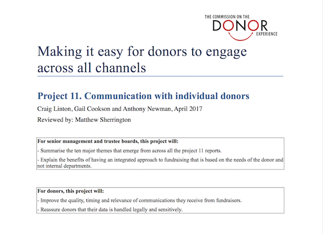 The Commission for the Donor Experience seeks to look at fundraising, in this instance mass market fundraising, from the point of view of the donor.