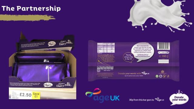 Without its usual wording, every limited-edition bar sold was literally donating its words. But best of all, 30p from each bar sold was going towards Age UK to help provide vital services and support when older people need it most.