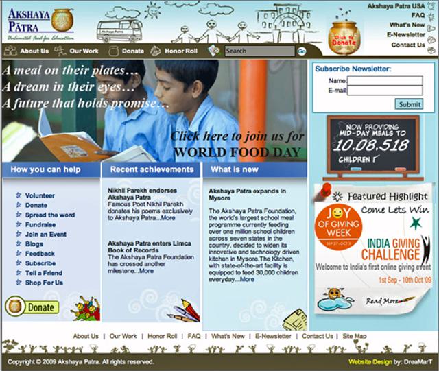 In 2008, thanks largely to its effective Internet campaign, Akshaya Patra was one of the five organisations worldwide to win the members project award – and the only one from India.