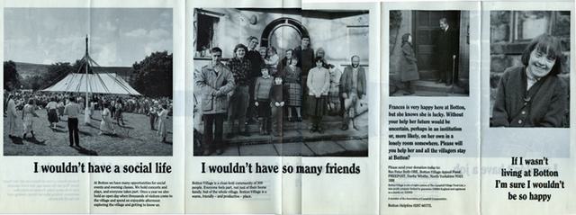 Il ritratto positivo della vita della comunità di Botton Village e la sua filosofia d’azione, riuscirono ad emergere molto chiaramente attraverso tutto il mailing. Per questa ragione da allora il messaggio è sempre stato il punto di riferimento per tutte le successive campagne di Botton Village e” The Camphil Family”.