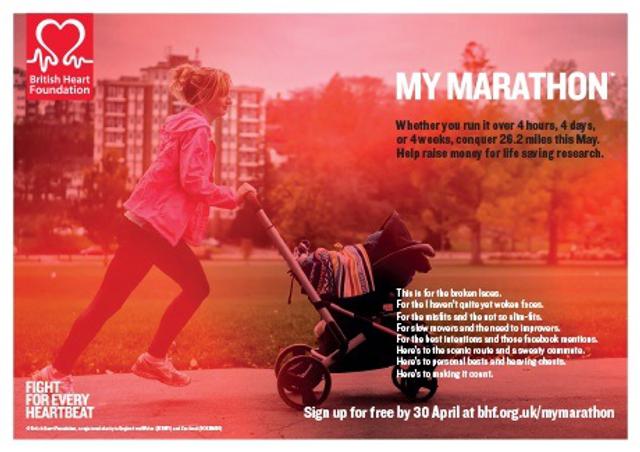 MyMarathon was a simple concept which was all inclusive and open to anyone, no matter their location, time constraints or fitness levels. BHF asks participants to do whatever they are able but is still challenging so people are more likely to become sponsors.
