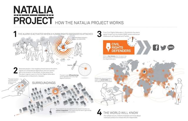 Everyday, people all over the world risk their lives defending rights most people in the western world take for granted. The Natalia Project was founded to protect these heroes. The Project is a personal alarm for human rights defenders named after Natalia Estemirova who was abducted and murdered in 2009.