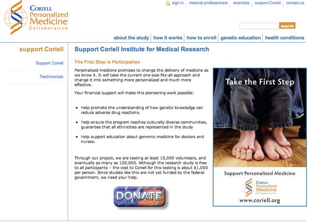 Until there is evidence to show that personalised medicine will have demonstrable results in healthcare delivery, healthcare providers will not reimburse for genomic testing. Coriell has become a leader in the area of personalised medicine, but we need help to accelerate Coriell's advances in the translation of personalised medicine discoveries into people's everyday healthcare needs.