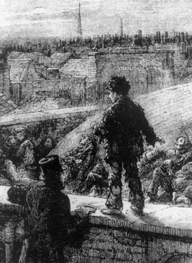 Barnardo tells how after their meeting Jim then took him down to the 'lays' around Petticoat Lane where children slept. Though familiar with the destitution of the families in London’s East End, Barnardo and his colleagues knew nothing of the hidden world of those children who had been orphaned or cast out by their own families. He was amazed and appalled as Jim led him around back streets, climbing over roofs to see children sleeping huddled amongst the chimneys for warmth and felt he had to do something to help them.