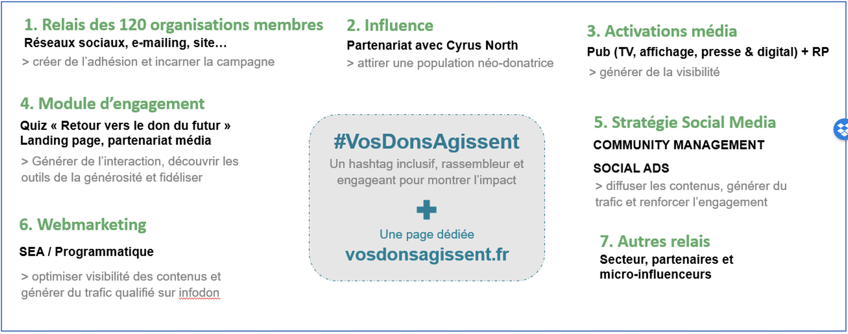 Donor testimonials, engaging adverts, influencer videos, impactful visuals… this campaign drew on a wide variety of content in order to attract the attention of as many people as possible to the positive impact of donations for all causes. Multiple platforms were used, including TV ads, posters, press inserts and, of course, digital. More information on the campaign can be found here: www.vosdonsagissent.fr.