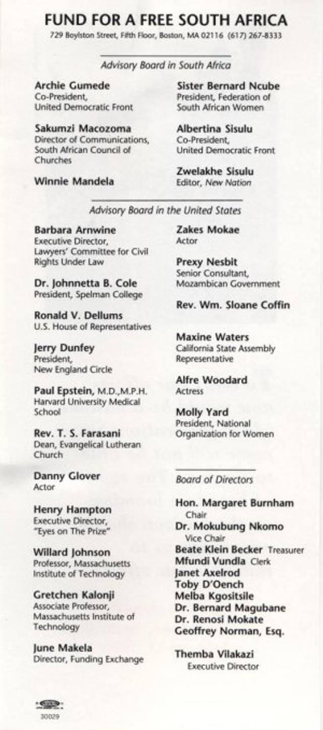 Fund for a Free South Africa: high value mailing