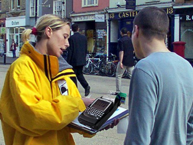 L’accord était de tester une activité nouvelle et unique. L’idée était d’approcher des donneurs potentiels en public, dans la rue, en espérant qu’environ un millier serait d’accord pour remplir un formulaire bancaire. Le formulaire était très long et certifiait que ces nouveaux donneurs convenaient à payer Greenpeace un don chaque mois. Rien de tel n’avait été essayé auparavant.