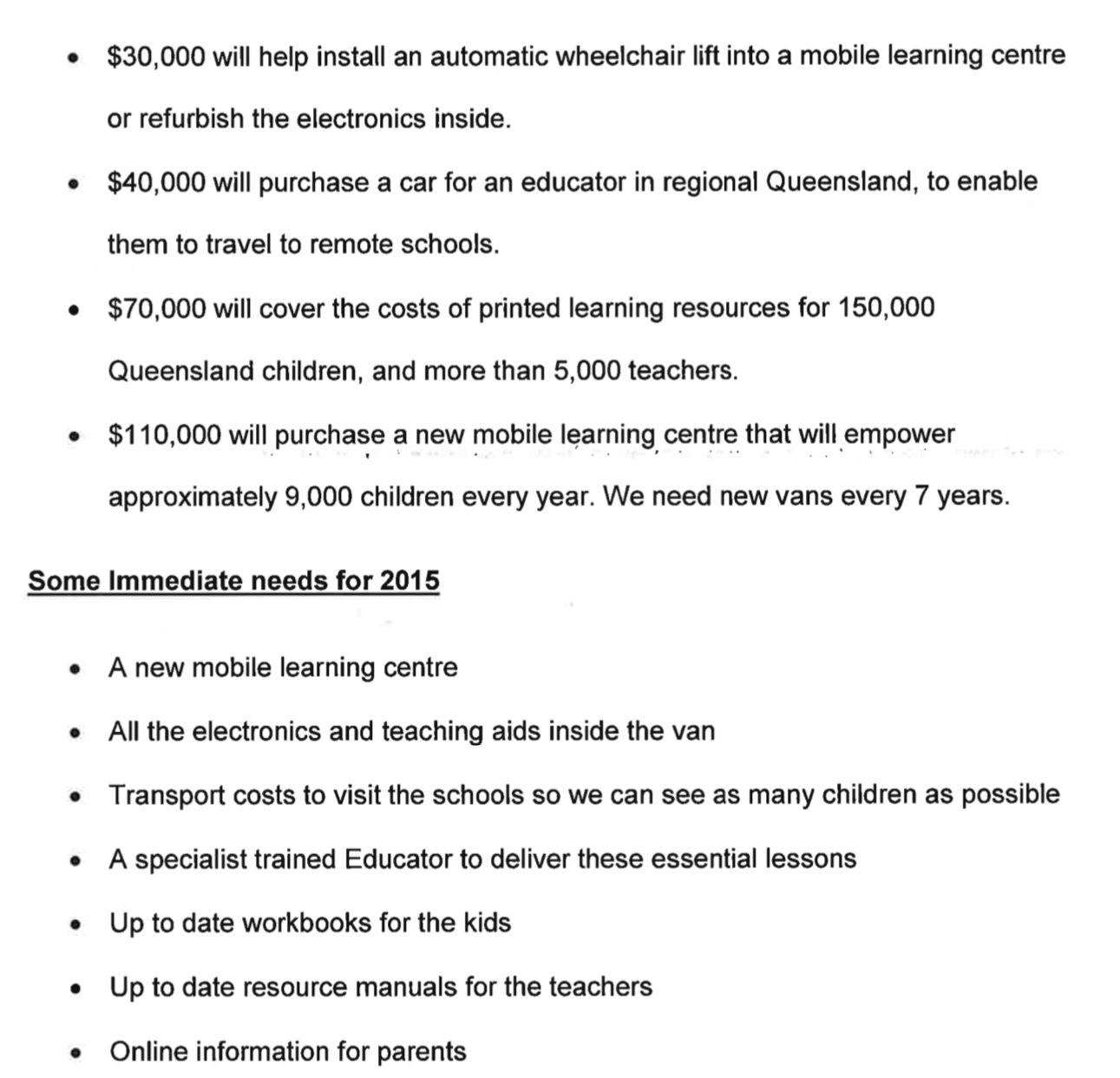 Up until 2015, however, the corporate community in Queensland had not been approached for their support. So the decision was made to send a letter to these potential donors, within the state.