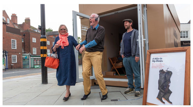 In June 2019 they opened up a London shoe shop that didn't sell shoes: the Choose Love x A Mile in My Shoes exhibition was launched for Refugee Week. Visitors had the chance to borrow a pair of shoes belonging to a refugee and take a walk with a headset while listening to a first-hand story of their life.