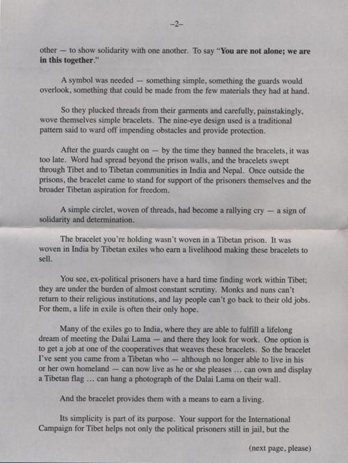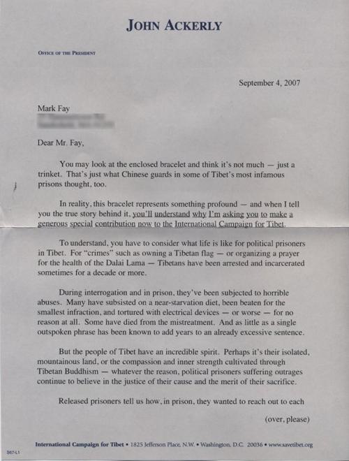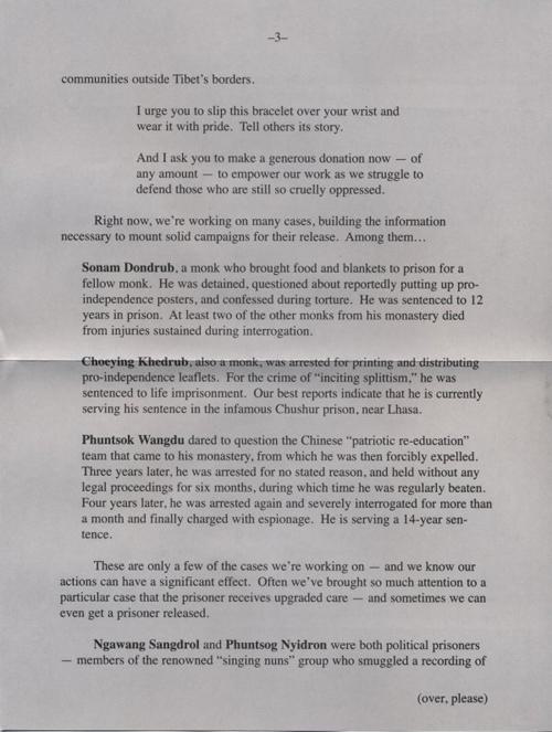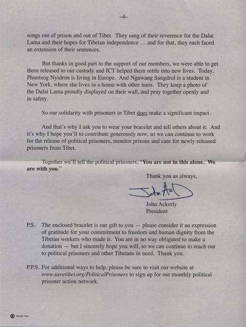 Cet appel est un symbole actuel des efforts spectaculaires et globales pour soutenir le peuple de Tibet. Son usage d'un 'bracelet de liberté', une incitation distinctive, montre l'art de la collecte de fonds par publipostage.