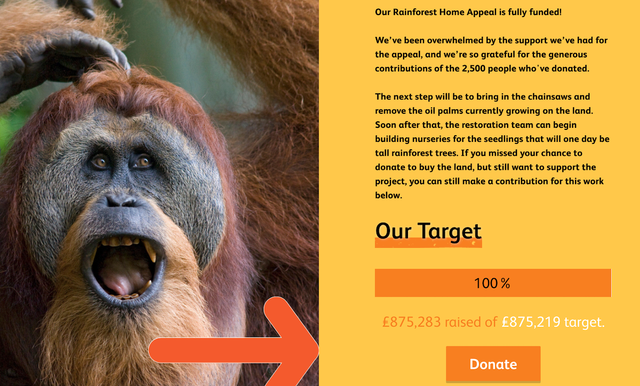 The campaign was a crowdfunding appeal aiming to raise the £870,000 that could buy that 390-acre plot and convert it from a palm oil plantation back to a rainforest.