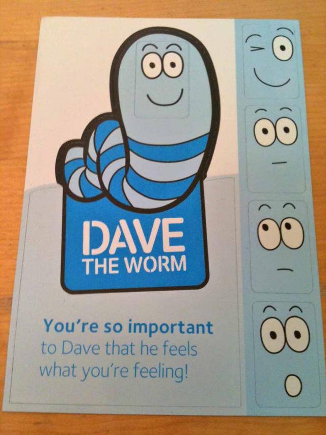 Il 17 Dicembre 2012, Dave ha chiesto ai suoi fan su Facebook di completare la frase seguente: “Mi piace Dave il Verme perché…”. Questi esempi mostrano come Dave sia stato accolto positivamente da quanti hanno deciso di donare a favore della lotta al Parkinson: