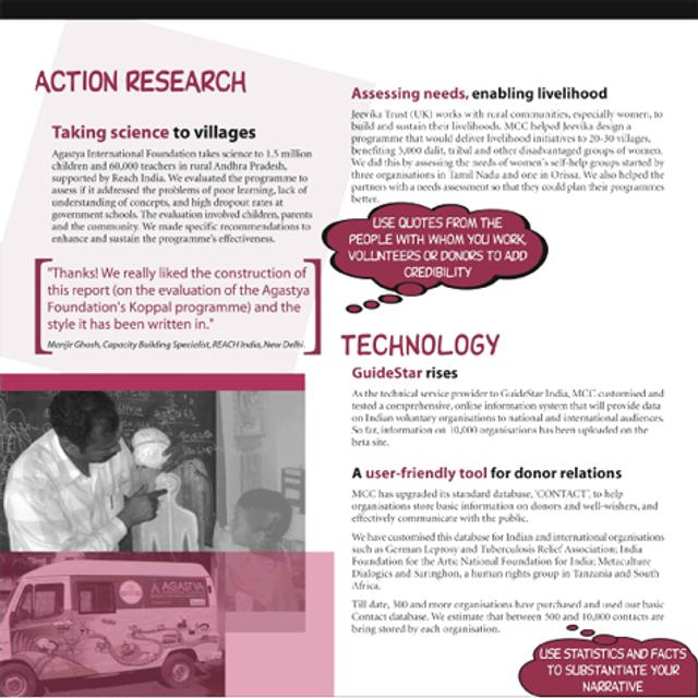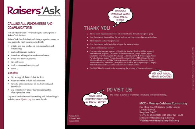 How good is this? From India's legendary fundraising and communications consultancy MCC comes an annual report specifically designed to help India's nonprofit organisations to communicate effectively and economically through their annual report. But you don't have to be in India to benefit from this simple clear tutorial. Have a look now.