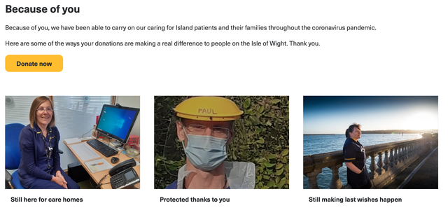 Continuing our series of great campaigns in the time of coronavirus, here is something special from Mountbatten Isle of Wight, a hospice in the UK. Faced with financial difficulties caused by the pandemic, they created a swift online appeal to finance the purchase of protective equipment for staff and volunteers. This chimed perfectly with the national mood of support for key workers, and it included both a powerful message and an excellent follow-up with donors. The numbers were incredible and they did it all at a cost of only £260!