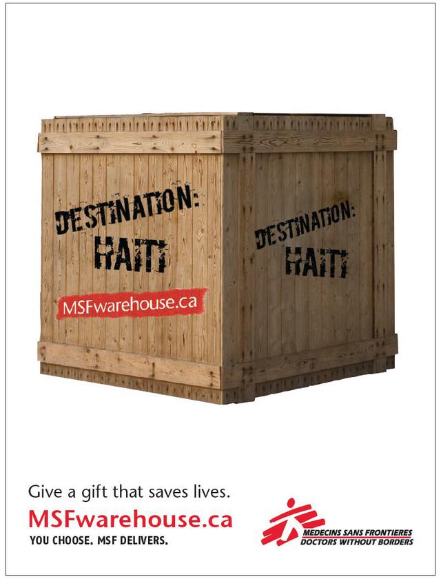 In just six weeks, the MSF warehouse achieved positive return on investment, covering all the costs of the website development and mass marketing campaign, and more. The average donation was over CAD 140, which is approximately double the average received on their regular donation page. A post-campaign survey was conducted and found that 96.5 per cent of respondents found the MSF warehouse site easy to use and more than 95 per cent would recommend the MSF warehouse to their friends. Plans are underway for updates to the MSF warehouse and continued marketing initiatives to raise funds through the online catalogue.