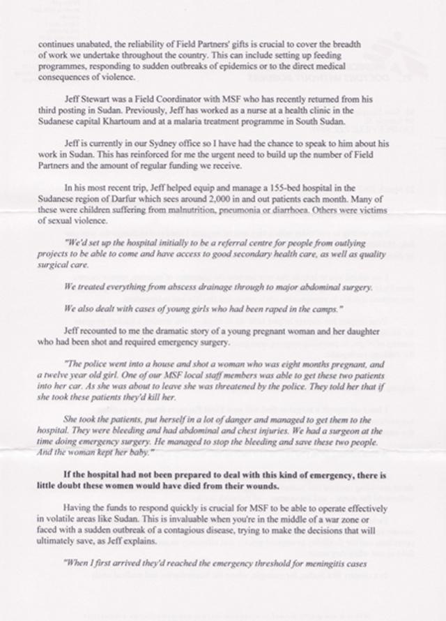 - Highly personalised copy that referred to donors by name and acknowledged how long they had been supporting MSF.