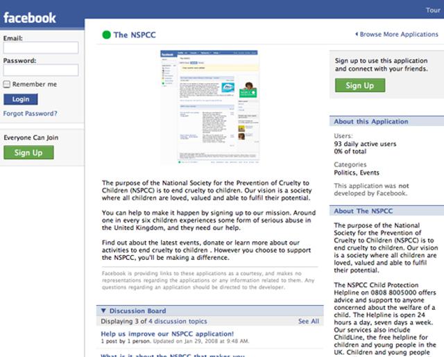 The NSPCC Facebook application was launched in August 2007, so is a test. We will monitor the usage and evaluate its impact.