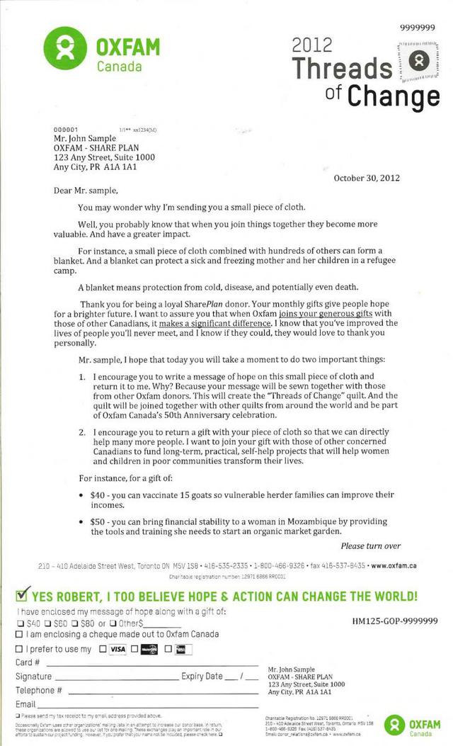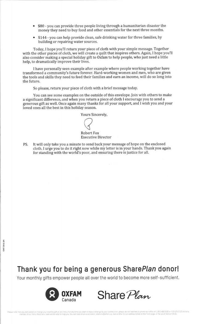 The message was that – like small pieces of cloth sewn together to make a warm, protective blanket – their donations, along with those of many others, could help Oxfam create great change.