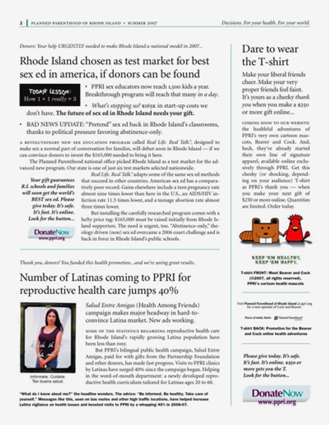 PPRI allowed and encouraged the newsletter's producer, Tom Ahern, to follow his concept of best practice (as outlined in his book on donor newsletters, The Mercifully Brief, Real World Guide to Raising More Money With Newsletters Than You Ever Thought Possible (Emerson and Church 2005). Tom's book is based on a critical examination of hundreds of nonprofit newsletters. It may have a lousy title, but it's a good book!