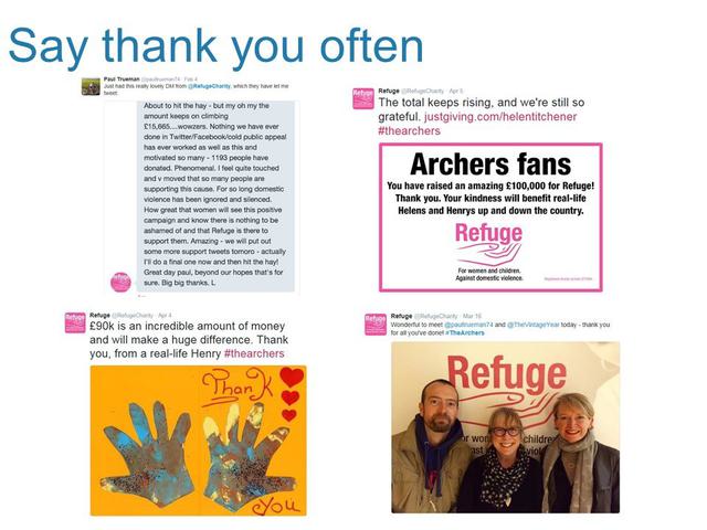 Refuge had to be reactive to their overnight success and seize the opportunity by complementing the fundraiser's promotion on Twitter with Refuge's social media channels to extend its reach. This campaign demonstrates the power of a story underpinned by great use of digital, which created a community that wished to be heard, take action and donate.