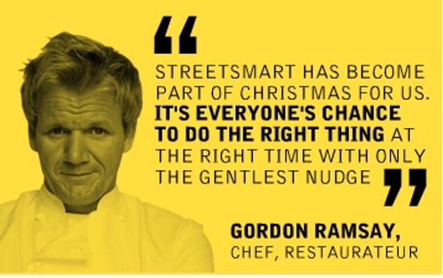 Streetsmart Levanta milhares de Libras para instituições de caridade para sem teto por todo o Reino Unido todos os anos durante os meses de Novembro e Dezembro. A idéia é simples: Os restaurantes participantes terão um cartão em cada mesa, ou um lembrete no menu, explicando que voluntariamente será adicionado a doação de 1 libra no final da refeição de cada mesa. Após isso, o StreetSmart distribuirá essa doações diretamente entre as instituições de caridade para sem teto mais conceituadas por todo o Reino Unido.