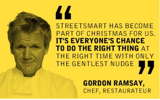 StreetSmart was set up in 1998 by two ethically minded Londoners, William Sieghart, founder of Forward Publishing and chairman of StreetSmart, and Mary-Lou Sturridge, former director of The Groucho Club. Throughout the run-up to Christmas, many people go out to restaurants to eat and celebrate the spirit of the holidays with friends and family. Sieghart and Sturridge wanted to harness some of that good cheer and use it to help others.