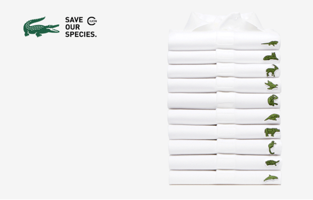 ‘Lacoste’s crocodile not only gave up its spot in the shirts but also across their brand. For one day only, nine Lacoste stores worldwide as well as the online shop got a makeover and featured the threatened species in their retail space.’