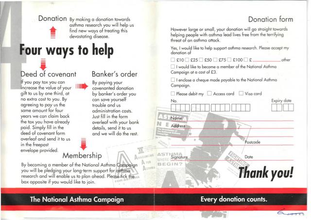 Cary Spink was National Asthma Campaign’s director at the time. She wanted to project the organisation as a dynamic, campaigning research organisation working urgently to combat the scourge of childhood asthma, which was then on the increase. This pack answered her brief precisely.