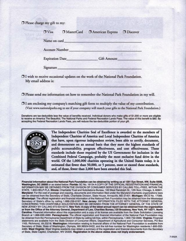 The National Park Foundation was created by the United States Congress to support the country’s national park system by mobilising private support for the government agency, the US Park Service, which administers the far-flung system. For many years, the Foundation had been largely ineffective, far overshadowed by a private nonprofit organisation, the National Parks and Conservation Association—overshadowed to the point that many Americans look on the private entity as official. Then a dynamic new leader was appointed to lead the Foundation and dramatically increase private support. New staff and outside consultants came onboard, including Mal Warwick Associates in 2007, charged with overhauling the Foundation’s lacklustre individual donor programme. The mailing illustrated here was one of a large number created by Mal Warwick Associates to reactivate existing donors to the Foundation and to build a larger file through acquisition.