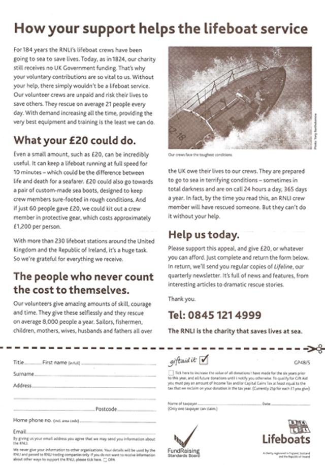 The RNLI ‘He’ll face…’ insert aimed to recruit both new members and donors.