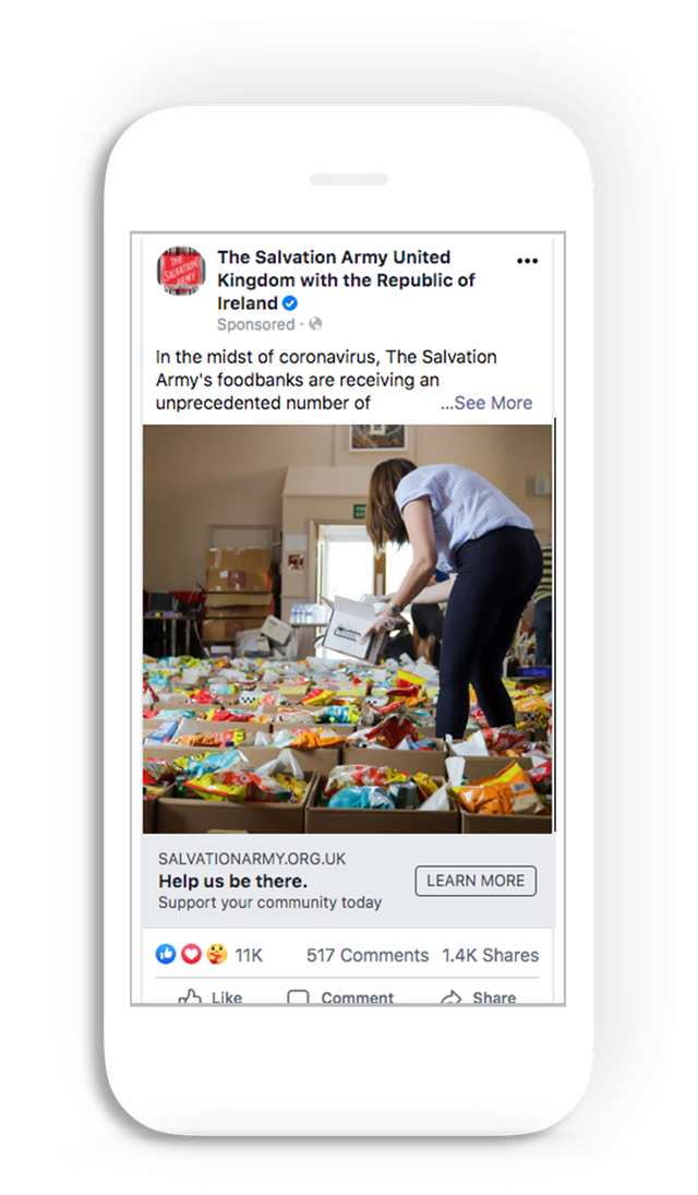 Spanning over three months, from 27 March until 21 June, The Salvation Army ran a multi-channel campaign which included pivoting their digital marketing with Manifesto to drive donations to support their coronavirus impact food programme.