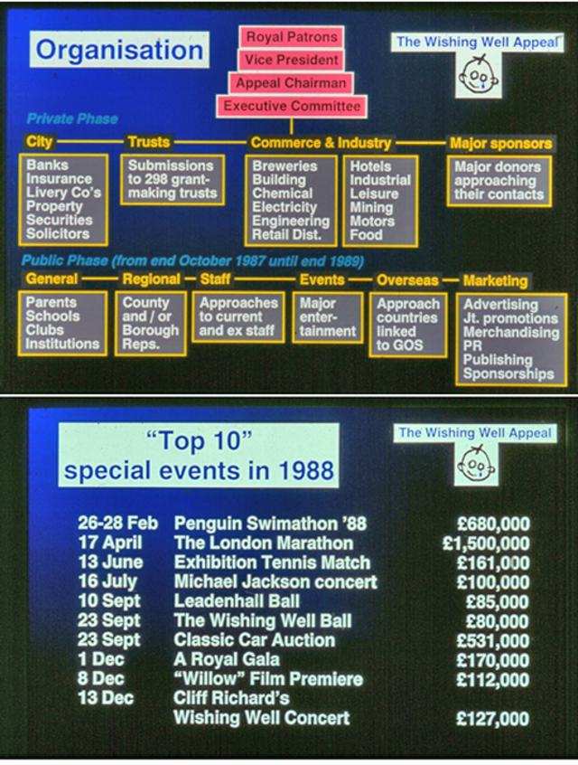 There was no fundraising structure in place before the Wishing Well Appeal, so it had to be set up from scratch. The director aimed to use minimum staff, backed by suitably qualified volunteers, before the money started to flow. At the height of the Wishing Well Appeal, there were up to 100 office volunteers, working in rotas, manning six telephone lines in a very inadequate basement. They were magnificent.