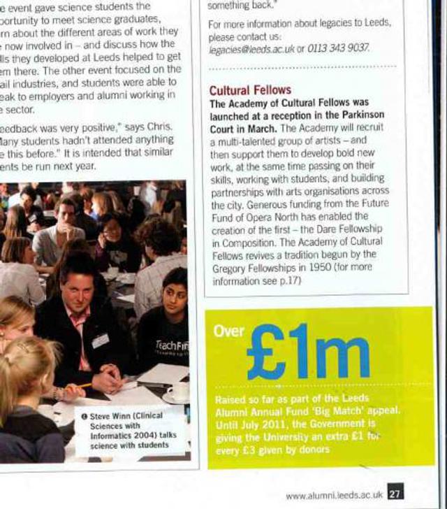 UPDATE from Adrian Salmon - Annual Fund Manager - Alumni & Development Team, University of Leads: 20 Jul. 11