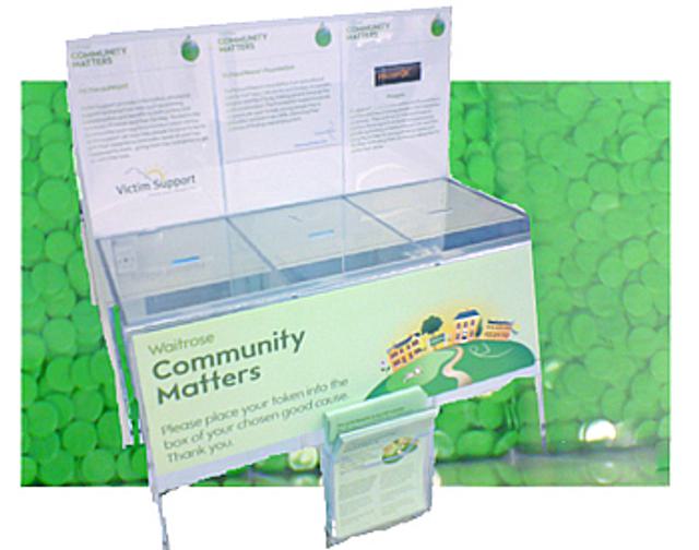 Once the store has chosen its projects/organisations, customers at checkouts are given tokens to place in one of the three boxes allocated to the successful charities at the exit of the store. The money is then divided up among the charities according to the proportion of tokens they have in their respective boxes.