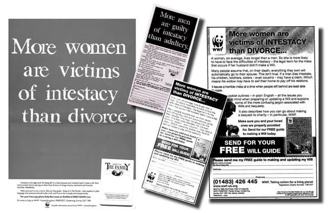 Nous sommes au tout début du legs marketing – la plupart des charités se contentaient de publicités improvisées. WWF décida qu’une campagne marketing mixte aiderait à promouvoir la nécessité d’avoir un testament valide, en évitant les idées reçues autour des questions légales. Ils produisirent donc une brochure sans jargon appelée « keep it in the family » qui donnaient des informations générales sur le droit de succession. Cette brochure contenait également des informations sur le travail de WWF et suggérait aux personnes concernées d’ajouter WWF à leur testament.