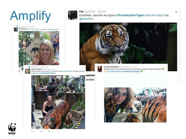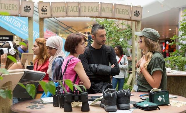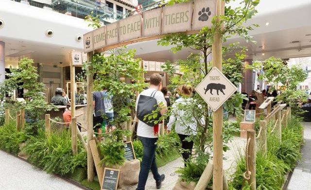 A pop-up artificial rainforest was set up in Westfield shopping centres in London as part of WWF's Tiger Experience. The experience comprises a guide through the animals’ shrinking global habitats with a ‘ranger’ – a fully trained brand ambassador – and ends with a virtual-reality trip through the Nepalese jungle to come face to face with tigers. Consumers can then share a photo-booth picture with the hashtag #ThumbsUpForTigers, before being encouraged to sign up to adopt a tiger.