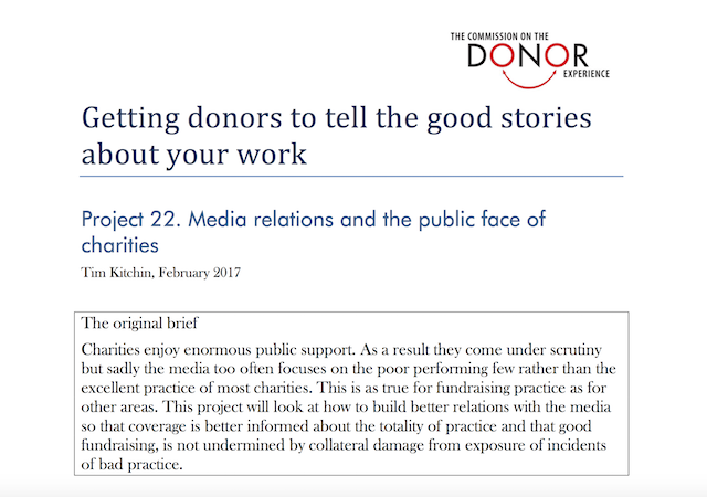 Charities enjoy enormous public support. As a result they come under scrutiny but sadly the media too often focuses on the poor performing few rather than the excellent practice of most charities. This is as true for fundraising practice as for other areas. This project will look at how to build better relations with the media so that coverage is better informed about the totality of practice and that good fundraising, is not undermined by collateral damage from exposure of incidents of bad practice.