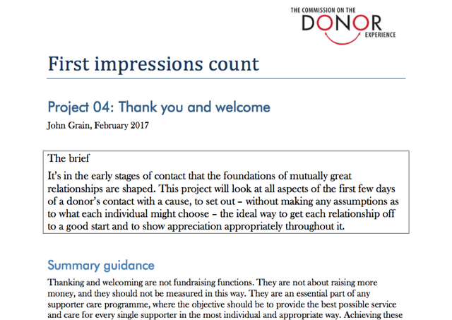 This project will look at all aspects of the first few days of a donor’s contact with a cause, to set out the ideal way to get each relationship off to a good start and to show appreciation appropriately throughout it.