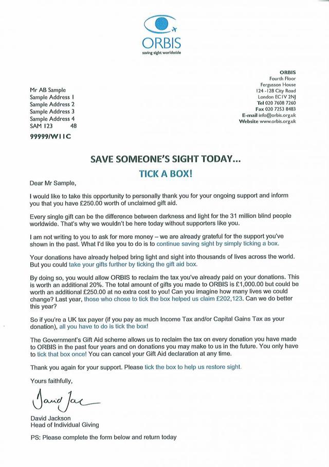 Read moreORBIS: gift aid campaign