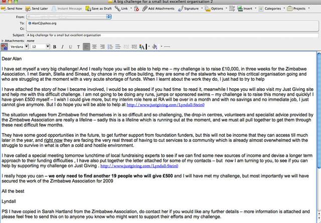 How chance played a large part in raising £10,000 in just one month. Lyndall 'primed the pump' by donating £500 of her own money.