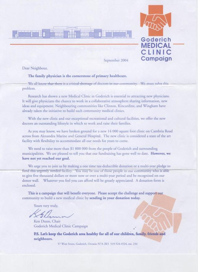 A really lovely appeal, which shows that it pays to have a couple of direct mail professionals living in your town. In this case, holiday residents Mary Attfield and Steve Thomas set about organising a simple but effective local appeal to make sure local people could have access to their own doctors.